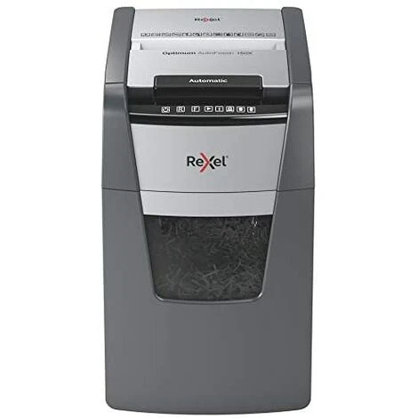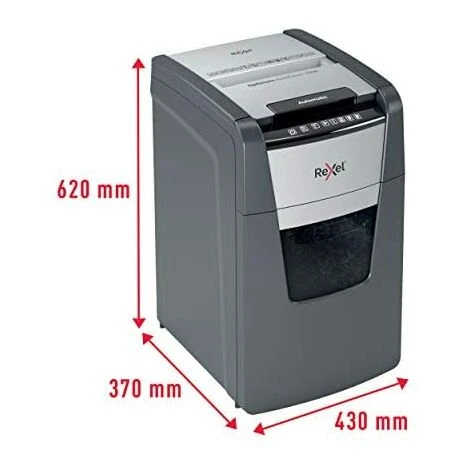 Le destructeur à coupe transversale Optimum AutoFeed + 150X détruit automatiquement jusqu’à 150 feuilles de papier A4 (80 g/m2) à la fois, en morceaux à coupe transversale P-4 (4×28 mm). Ce destructeur à alimentation automatique est un destructeur de bureau sophistiqué doté d’un bac amovible de 44 litres. Plus besoin d’alimenter manuellement le papier ou d’enlever d’abord les agrafes et les trombones, ce destructeur de papier automatique fera tout le travail pour vous.