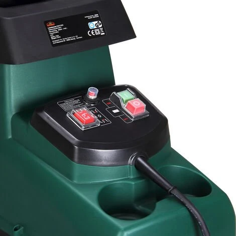 L’interrupteur marche/arrêt est équipé d’une fonction d’inversion veillant à changer le sens de rotation et à parer facilement à un éventuel blocage. La trémie et l’auto-tirage régulier assurent un remplissage facile et un travail sans stress. Par ailleurs, les roues et le poids de l’appareil de seulement 20 kg permettent de le transporter très facilement et de ménager votre dos. Le broyeur de jardin fait preuve d’une grande efficacité pour broyer du bois dur et des branches.
