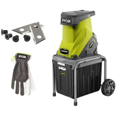 Pack RYOBI Broyeur de végétaux 2500W RSH2545B – Gants de jardinage Cuire Taille M RAC810XM, idéal pour les jeunes pousses et la taille de saison. L’entrainement automatique des branches permet un débit élevé pour plus de rendement. Vous pourrez stocker jusqu’à 40L et ensuite bénéficier d’un vidage facilité. Un moteur puissant de 2500 W va se charger de s’occuper de vos branches qui vont jusqu’à 45 mm de diamètre.