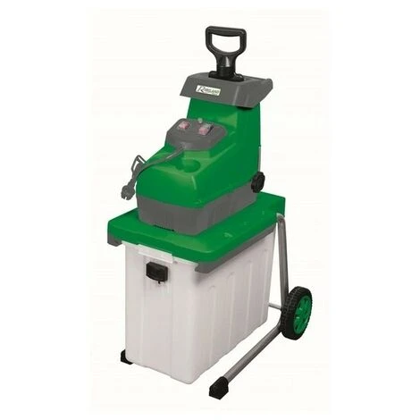 Ce broyeur végétaux électrique monté sur roues a une puissance de 2800 Watts. Il a une vitesse de rotation à vide de 60 tr/minutes et est très silencieux. Par sécurité, il a un interrupture marche/arrêt et une protection thermique à réenclenchement manuel. Il a une possibilité de broyage des branches jusqu’à 44 mm de diamètre. Ce broyeur a une capacité de récupération de 60 Litres. Il est équipé d’une poignée poussoir, d’un couteau rotatif et d’un contre-couteau réglable. Il est possible d’inverser le sens de rotation.